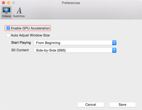 Command-, to open Preferences window, tick the Enable GPU