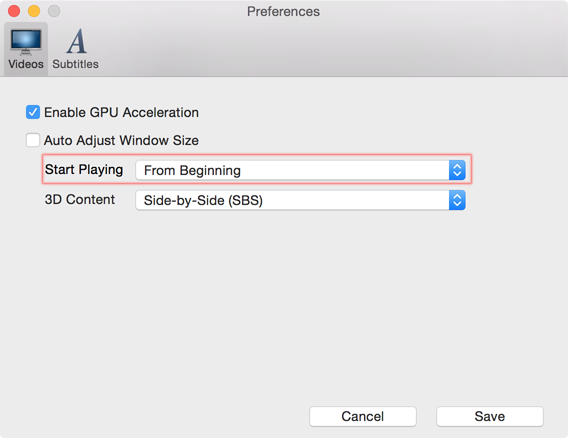 Open Preferences window, change the start playing